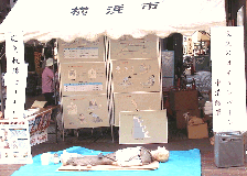 救急の日(2000/9/9) 9月9日だから「救急の日」。 なるほど、よくわかる。 伊勢佐木町で救急救命士の 実演ショーをやってた。 マネキン人形相手に、 なかなかの腕(演技)を披露。 どこで「技」磨いてんのかな?