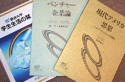 放送大学(2001/9/21) 何を思ったか、 放送大学を受講することにした。 スタートは10月。 科目はとりあえず 「ベンチャー企業論」と、 「現代アメリカ思想」の2つ。 がんばるぞ! 最終学歴は放送大学になっちゃうんだろうか