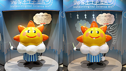 入口の「はれるん」は、フラッシュをたいて撮ると背景が現れる(右)