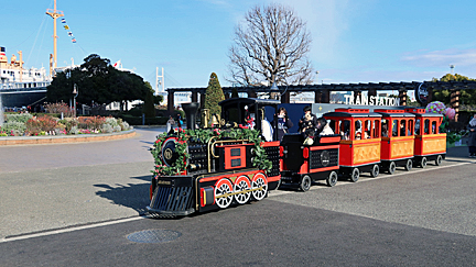パークトレイン(2026/1/31) 山下公園で去年の暮れから、 ウインターワンダーパークやってる。 公園内をパークトレインが運行し、 インチキスケートリンクもできてるよ。 なんだかのんびり、平和な世界だ。