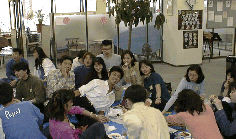 外は、あいにくの雨。 予定していたお花見は、 IMA(英会話教室)で行うことになった。 まあどこで飲もうが「飲めば都!」 いろいろゲームとかやって 楽しい一日でした。