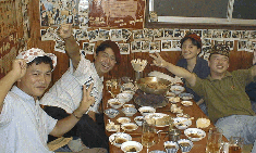関西に遊びに行ったんだけど、 訳わかんない! 滋賀県は石山にある焼き肉屋「麗門」! 世界一周コースというのがあって、 いちいち「フランス風三色なんとか」とかいいながら 次々に焼き肉を持ってくる。 最後は女将がポラロイド持ってきて 帽子をかぶらされ、 「おいしかった〜」と 記念撮影! 行ってみる価値ありと見た。