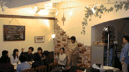 ビデオの撮影(1999/2/4) 会社の次の発売タイトルは、 「太陽のお告げ」 という占いソフト。 今日はそのプロモーション用ビデオの撮り。 学生アルバイトを使っての、 やらせの合コンだ。 素人なので萎縮気味。 後の編集が、 めちゃ大変だったのだ。