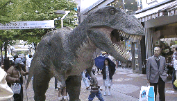 黄金週間始まる(1999/4/29) いよいよゴールデンウィークだ。 特に予定もないので、 じっくりと静養しようと思いつつ、 伊勢ぶら。 途中で恐竜のロボット発見。 リアルに動く模型を、 浮浪者がしっぽを引っ張って確かめてた。