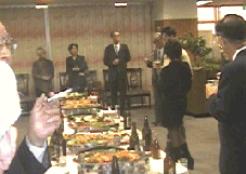 研究室OB会(1999/11/13) 大学のOB会で、 横浜国大保土ヶ谷キャンパスへ。 この会は三代の教授に引き継がれていて、 出席最長老は「昭和28年卒業」だから、 なんと70歳近い。 現役の大学院生と飲んでるとは、 すごすぎる。