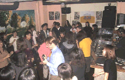 元町でパーティー(1999/12/11) 連夜の飲み会。 元の英会話スクールの クリスマスパーティーだ。 元町の店を貸しきってのディスコ大会。 そのまま二次会に突入したが、 昼間、頭のケガを抜糸したばかりなので、 途中で退散した。